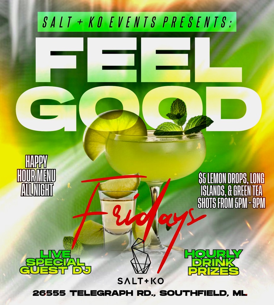 Kick off the weekend with Feel Good Fridays at Salt + Ko — where the vibes are smooth, the drinks are flowing, and the energy stays right all night. Enjoy our happy hour menu available all evening, drink specials from 5PM–9PM, a live guest DJ, and hourly drink prizes to keep things exciting. It’s the perfect Friday reset with great music, good people, and feel-good energy from start to finish.